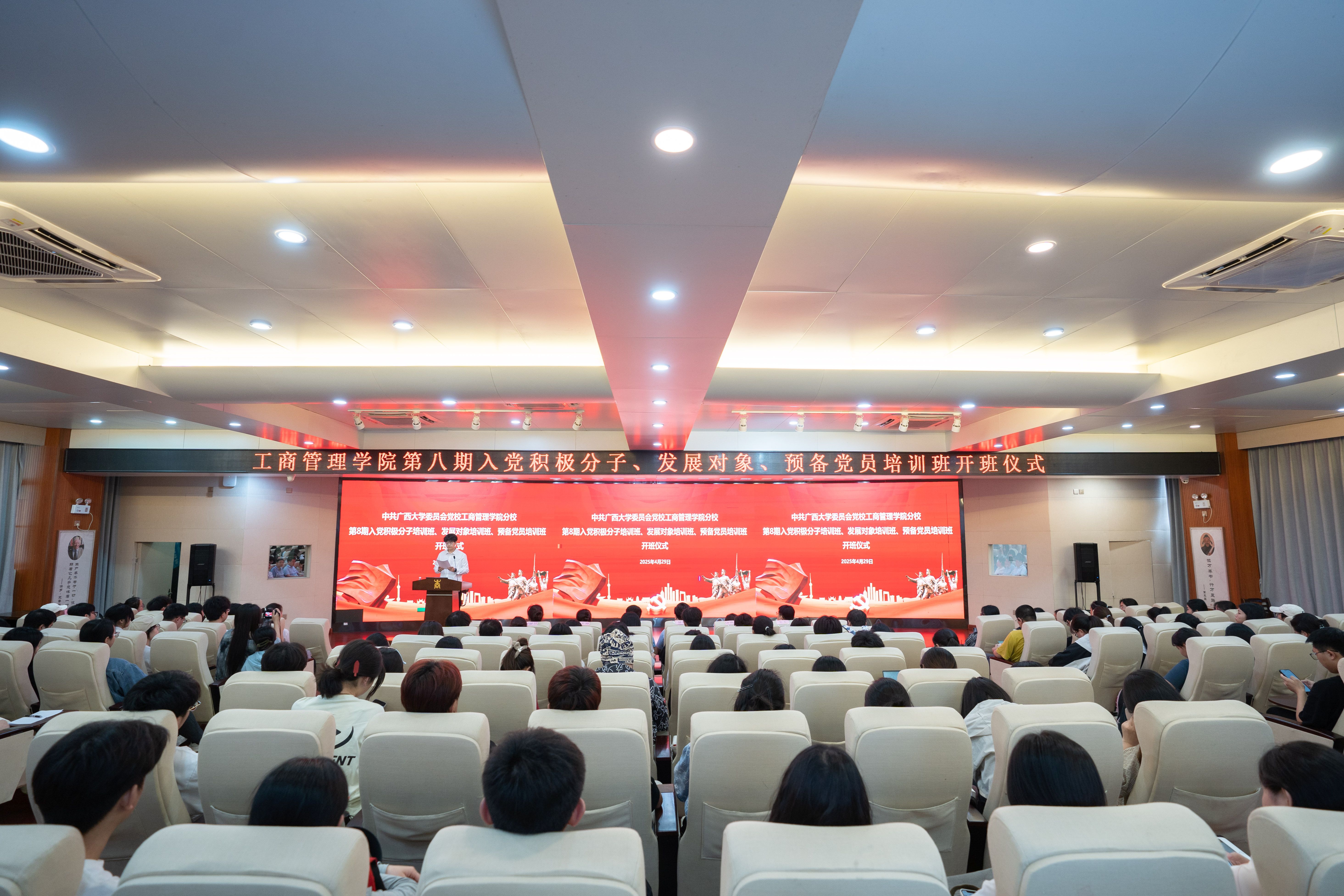 党委办主任、团委书记马丽娟,团委副书记郁文丹、学工组辅导员王乐、管雅娣及入党积极分子党校班、发展对象党校班和预备党员党校班所有学员参加了此次开班仪式。