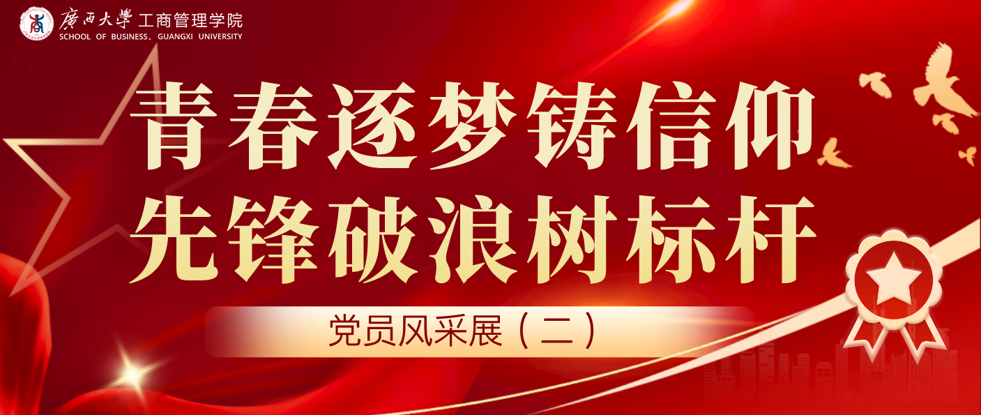 韦增庆政治立场坚定,积极进取,勇担责任,始终以党员标准严格要求自己,全心全意为同学服务。任职期间,她高效统筹党务工作,规范党员发展流程,累计组织30余次党组织生活,严格落实“三会一课”制度。创新开展“党建+”特色品牌活动:牵头与南宁市区农信社等单位开展联学共建主题党日,以学习贯彻习近平新时代中国特色社会主义思想为契机,搭建政企银校四方交流平台;联合文线上娱乐平台