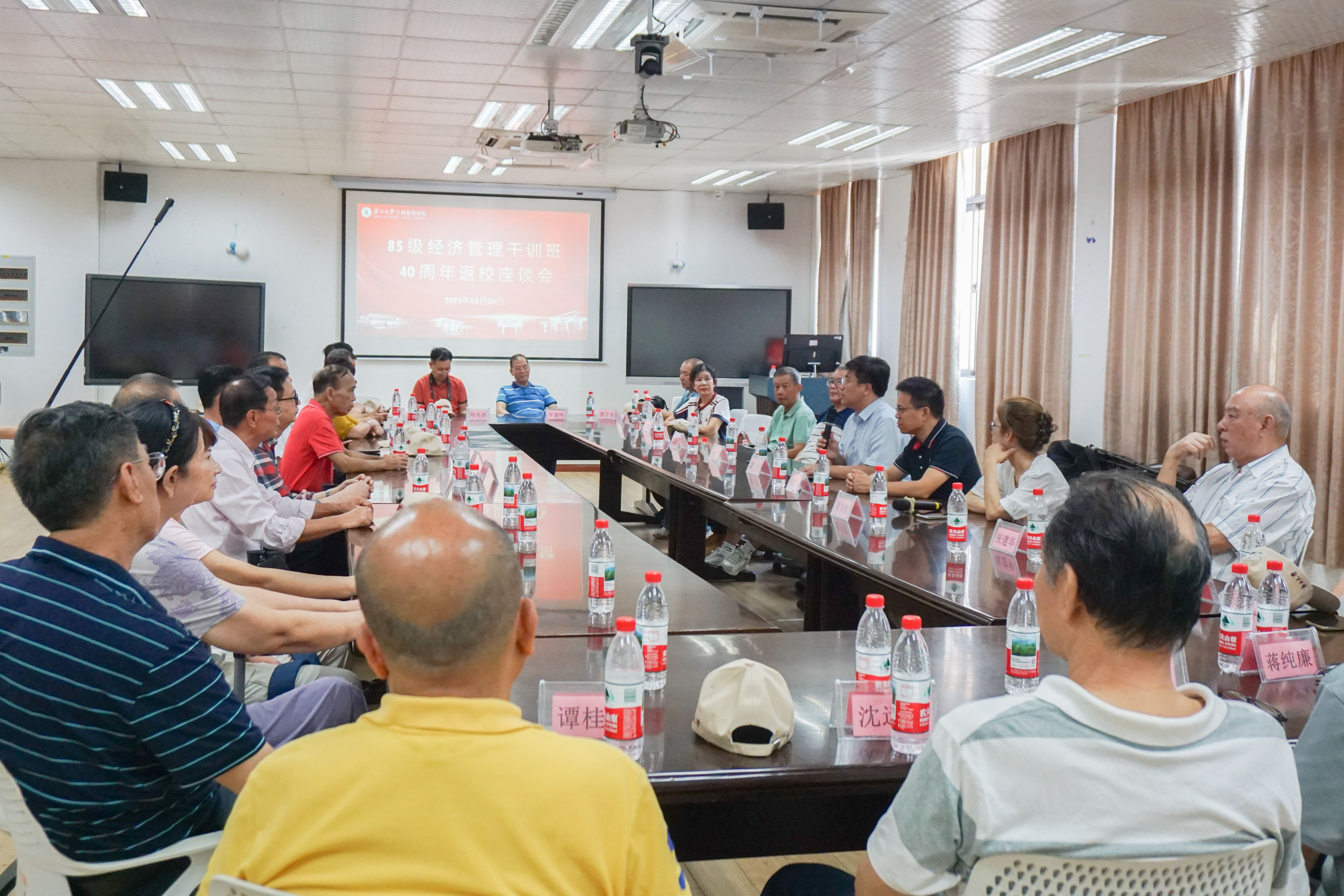 党委书记黄晋,校友工作与政企服务办公室主任覃朝勇、1985级经济管理干训班班主任吴冬霞、任课教师代表张培胜、唐咸历等出席座谈会,与校友们共话往昔、畅谈今朝。