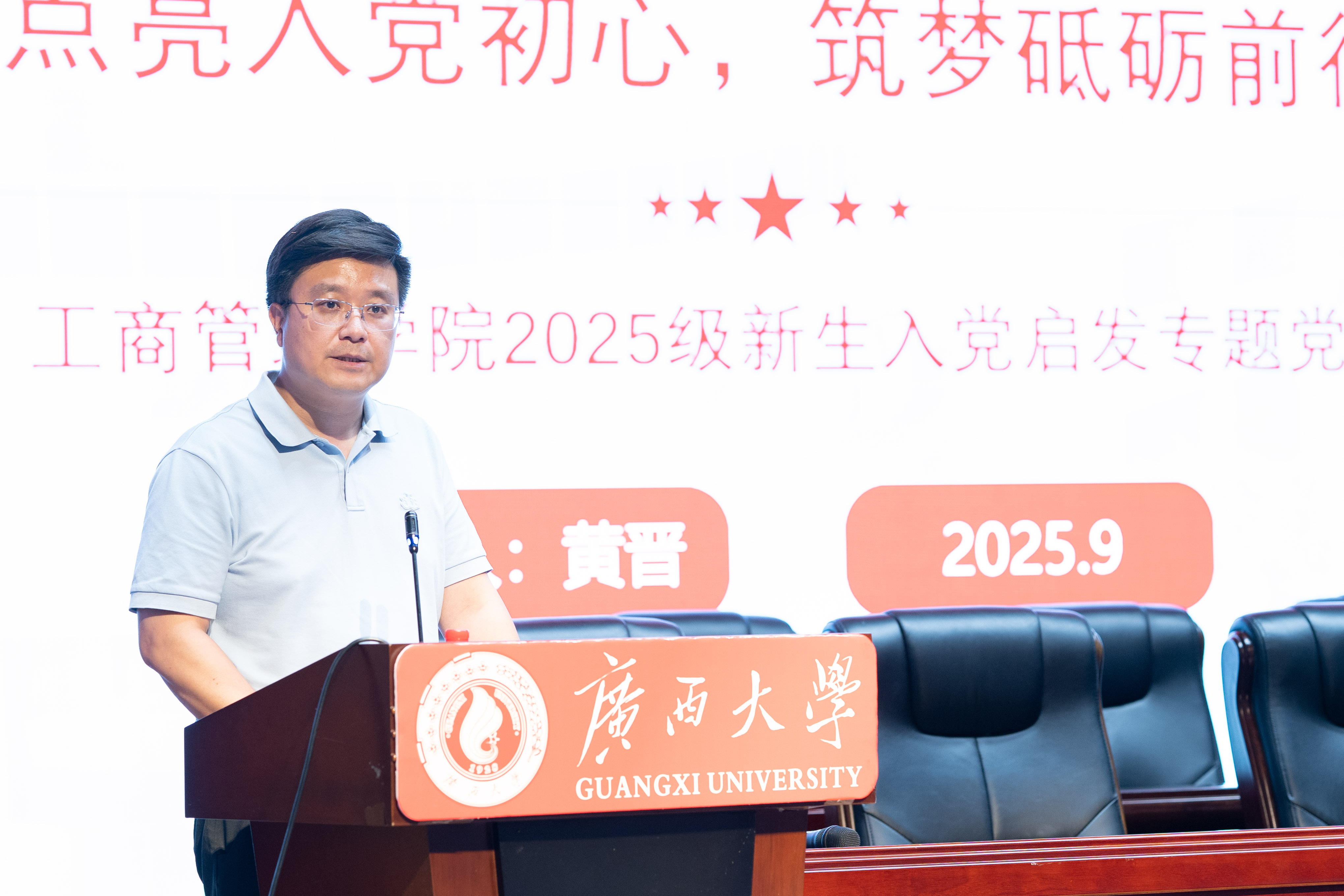优秀学生陈允杰为例,引导新生思考“为什么申请加入中国共产党”,激励新生将个人理想融入党和国家事业之中。黄晋指出,入党是一项严肃而庄重的选择,必须端正动机、坚定信念,在思想上先行入党,在实践中锤炼品格。