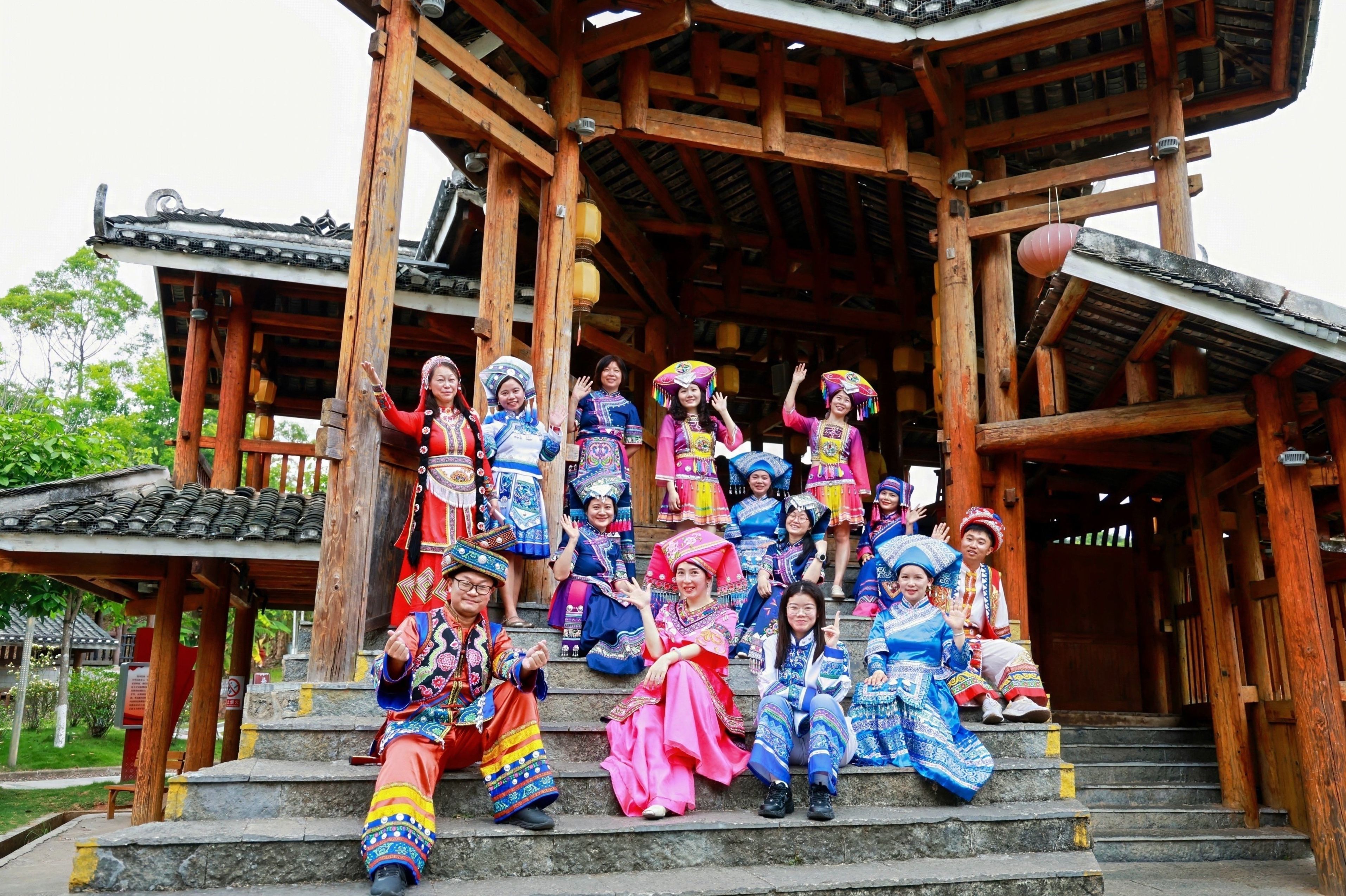 参观结束后,支部在广西民族村风雨桥上召开“树牢正确政绩观 推进中华民族共同体建设”主题座谈会。党支部书记廖东红首先带领大家学习了习近平总书记关于铸牢中华民族共同体意识的重要论述,并结合行政工作实际指出,行政岗位虽不站在讲台一线,但每一项管理服务、每一次师生沟通,都关乎民族团结教育的落地生根。树牢正确政绩观,就是要多做打基础、利长远、促团结的实事,把“中华民族一家亲”的理念融入日常工作的点点滴滴。她希望全体党员在服务育人中当好民族团结的维护者、促进者和践行者。