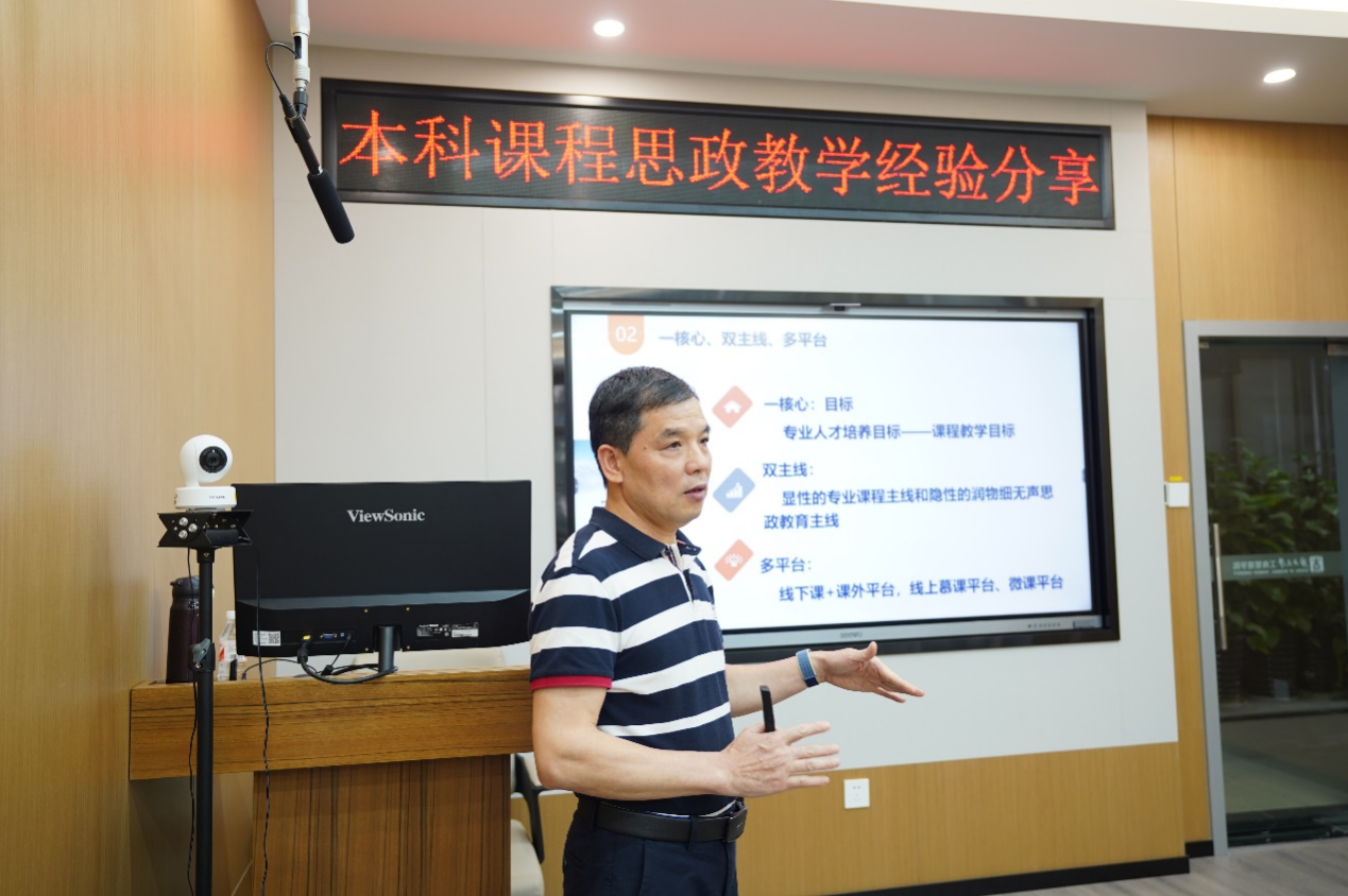 会上,胡峰老师围绕“课程思政”的建设理念,分享了自己在挖掘课程思政元素以及实现专业课程与思政教育有机融合方面的特色做法和经验,并通过一系列成功案例的分享,深入剖析了如何在课堂教学中融入思想政治教育元素。